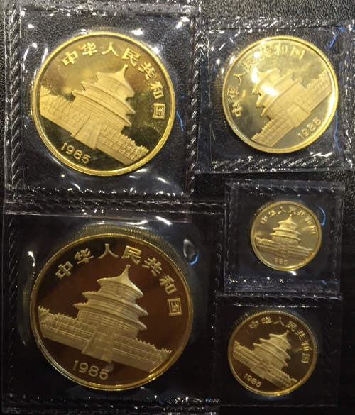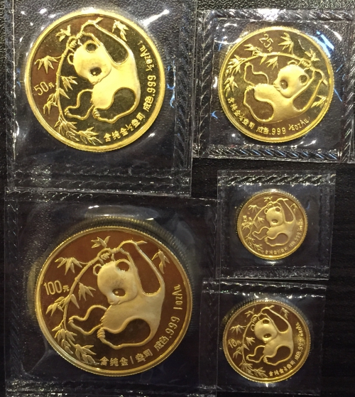 Набор золотых монет Китая "Панда" 1986 год