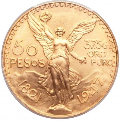 Золотая инвестиционная монета Мексики 50 Песо 1947 год, 37,5 грамм