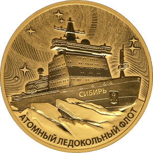 Памятная золотая монета "Атомный ледокол «Сибирь»" выпущена Центробанком России в 2024 году.