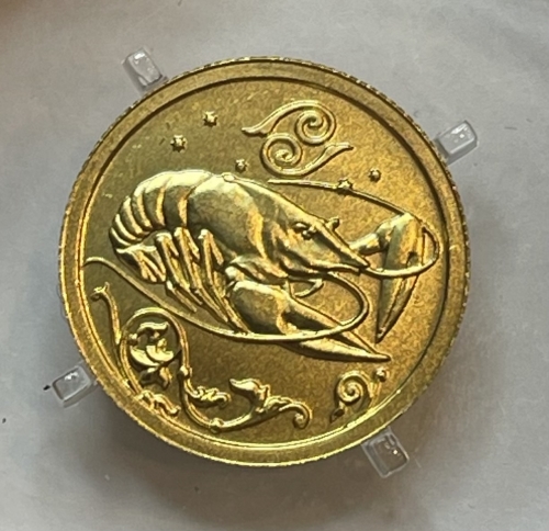 Золотая монета 25 рублей "Рак" серия: Знаки Зодиака, 3,11г., Au 999, 2005г.