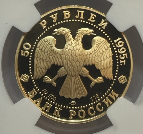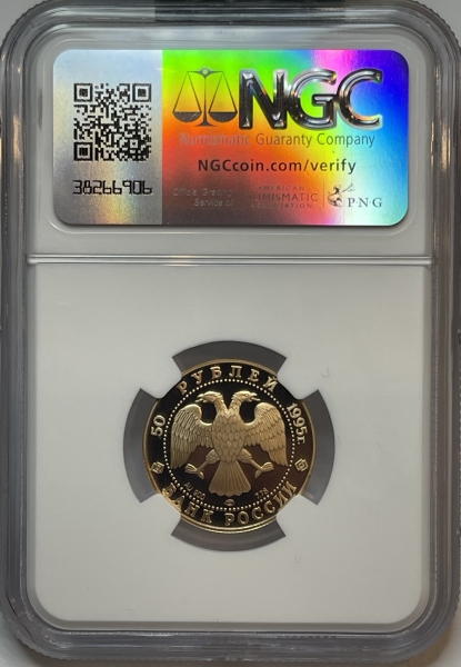 Золотая монета 50 рублей "Ф.Нансен" Исследование Русской Арктики 1995г.,7,78г., СПМД , Au 900 в слабе NGC PROOF 70 ULTRA CAMEO