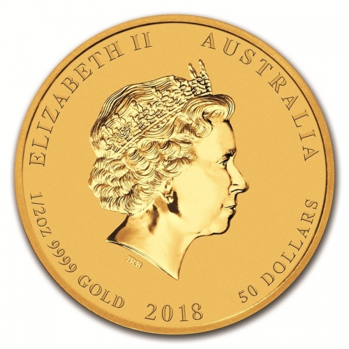 • На аверсе изображен профиль королевы Елизаветы II. Сверху надписи: «ELIZABETH II» (Елизавета II) и «AUSTRALIA» (Австралия). Также внизу указаны вес (1/2 oz – 1/2 унции), проба (9999), название металла (Au - золото), год (2018) и номинал монеты – «50 DOLLARS» - 50 австралийских долларов.