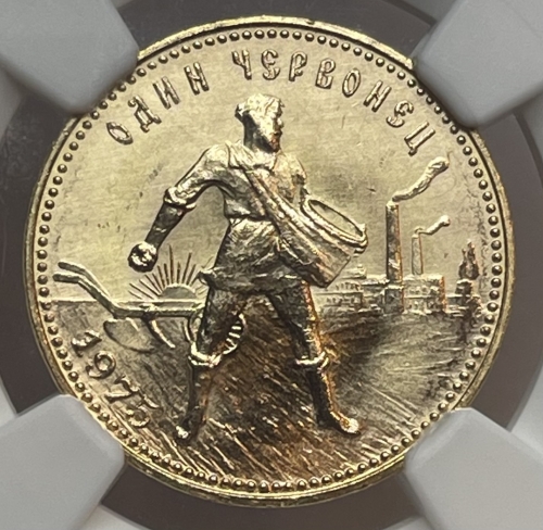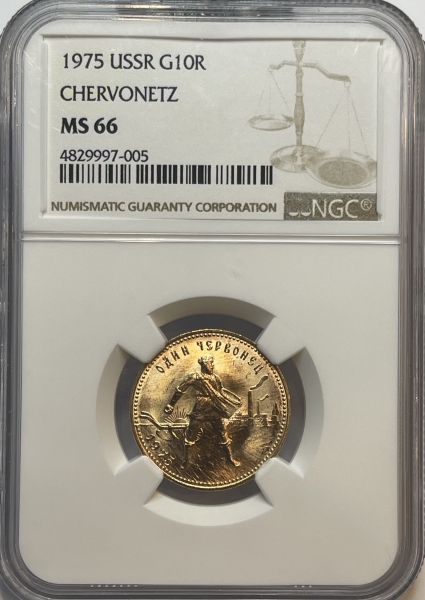 Золотая монета "Червонец Сеятель" 1975 года 8,6 грамм в слабе NGC MS 66